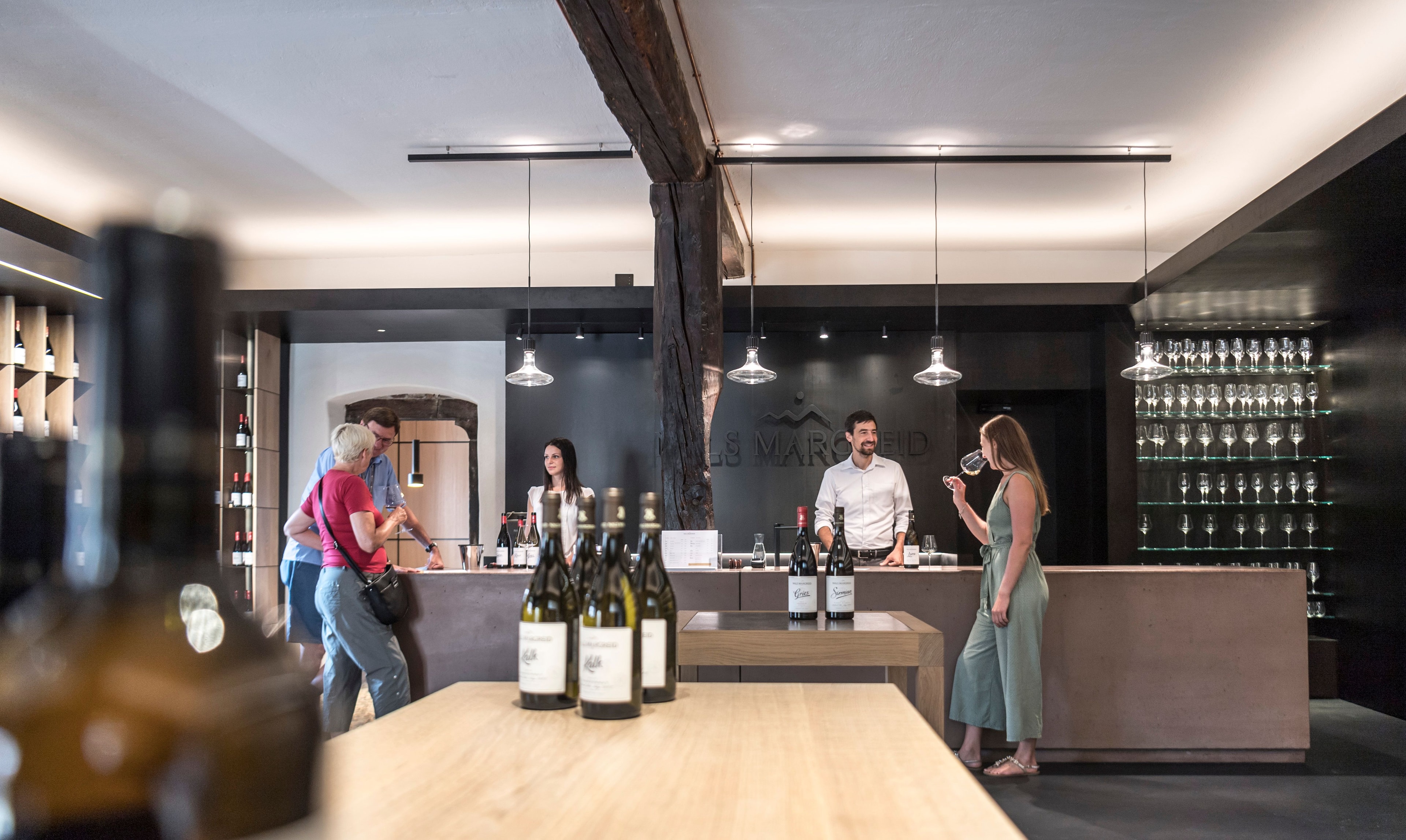 Si parte dall’energia verde del Sauvignon “Stein” 2023: profilo di pompelmo e sambuco, succo teso, chiusura lunga. È la fotografia della linea alpina della cantina, dove la caratteristica dei vini di Nalles è la freschezza.